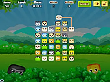 Combina todos los animales de 2 en 2 e intenta eliminarlos todos. Puedes combinar 2 animales iguales si hay un camino posible entre ellos con no más de 2 ángulos de 90 grados.