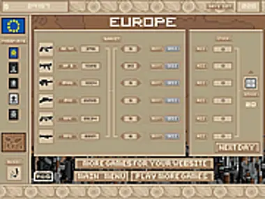 In Arms Dealer, you are a lord of warfare, travelling the globe in search of clients! The aim of the game is to get as much money as you can by dealing weapons. You have 300 days. Buy passports that will give you access to the different areas of the globe, fly around and trade weapons! Be sure to watch the market for price fluctuations as clients declare war on each other and occasionally sign peace treaties! Good Luck!