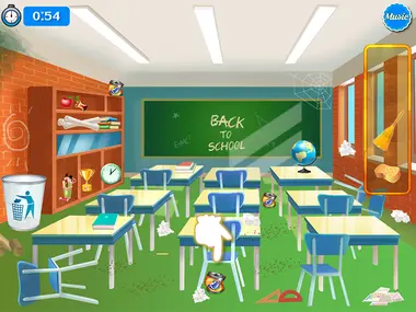 Limpia tan rápido como puedas empezando por el patio de la escuela, luego el aula y por último, pero no menos importante, el baño de la escuela. Termínalo en poco tiempo para estar en la tabla de clasificación y desbloquear logros mientras juegas.