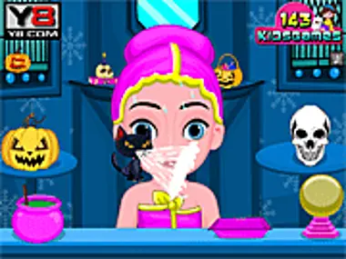 La gente en la ciudad está muy ocupada con la celebración llamada Halloween. La calle en la que vives está abarrotada de niños, jóvenes y comerciantes. La alegría y el júbilo brotan por toda la calle. En la calle, puedes ver una casa cubierta de árboles y flores. Esa es la casa de Elsa. Su mamá es una pariente cercana tuya. Cuando entraste a la casa, escuchaste el llanto de Elsa. Ella quiere desesperadamente que alguien la prepare para la celebración de Halloween. La mamá de la niña está ocupada en la cocina. Adorna a la bebé con los bonitos disfraces y aprovecha al máximo los cosméticos. Antes de vestir a la niña, embellece su rostro con las cremas faciales. Haz que el rostro luzca radiante y atractivo. Al final, embellece a la niña con tu creativo cambio de imagen. La Bebé Elsa y su mamá están muy agradecidas por tu ayuda oportuna.