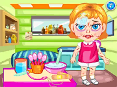 Baby was just playing volleyball then an accident just happened. You need to help baby and perform some first aid!