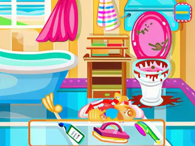 What a messy bathroom! Clean those messy stains and arrange those bathroom products. Make this bathroom presentable again.