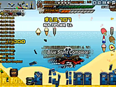 Usa tu cohete de acrobacias y tu bomba de choque con buen efecto para moverte incluso si pierdes las ruedas o estás en un barco fuera del agua. Recoge todos los carretes de acrobacias y destruye tantas cosas como sea posible para avanzar al siguiente nivel. ¡Gana suficiente dinero en efectivo y podrás comprarte un coche nuevo!