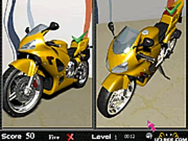 Identify the difference in the two different views of the same objects and click it to confirm. You get 50 points for every correct click and you lose 25 points for every wrong click. At the end of the third wrong click, the game gets over.