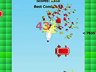 Jump and bump with the other ships and bounce with them. You can shoot the blue and yellow but never bump on the red ones.
