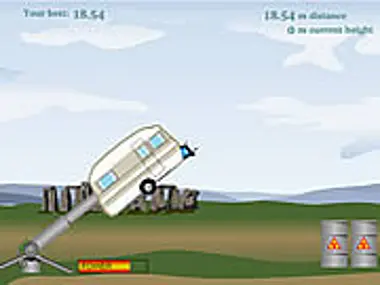 Launch the caravan just right so it bounces off the explosives and doesn't stop on rocks.