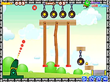 Fire your cannon & cause reactions that will end up pushing the little chicken into the proper spot.