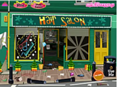 Nuestra Peluquería de la Ciudad ha quedado completamente hecha un desastre después de un largo día de trabajo. Ahora es el momento de empezar el nuevo día con una sonrisa. Sabemos que la primera impresión es la mejor, así que limpiemos la basura que hay fuera de nuestra tienda y luego nos encargaremos de los interiores. Así que, ¡arremanguémonos y pongámonos manos a la obra antes de que lleguen nuestros clientes!