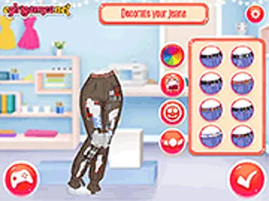¡Una de nuestras adorables chicas ha rasgado accidentalmente sus jeans favoritos! ¡Las otras chicas están emocionadas por ayudar a rediseñarlos! ¿Te sientes creativa hoy? ¡En este divertido juego, junto con las chicas, aprenderás a rediseñar jeans rotos! Elige el modelo de jeans y luego tiñelos de diferentes colores. Elige un patrón de rotos y decóralo con bordados, parches y pegatinas. ¡Ahora busca un bonito top y una chaqueta que combinen con los nuevos jeans rotos a la moda que acabas de crear! ¡Diviértete!