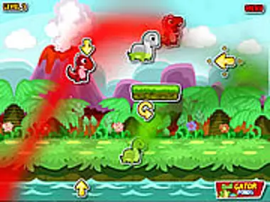 Los dinos se están divirtiendo allí cerca del río. De alguna manera encontraron las estatuas de sí mismos. Las estatuas no tienen color. Los dinos tienen que usar su aliento para colorear todas las estatuas del mismo color que ellos mismos. Usa la flecha para guiar el aliento hasta las estatuas. ¡Diviértete!