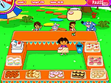 Dora Cakeberry Shop is a cute and fast‑paced food‑serving game where you help Dora run her busy cake shop. Prepare and deliver the right cakes to each customer, hit the daily sales target, and keep the shop running smoothly. Perfect for younger players who enjoy time‑management challenges, colorful cartoon graphics, and classic Flash‑era gameplay.