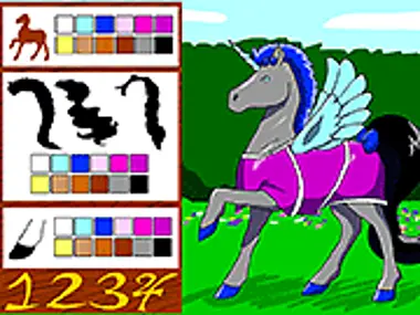 Haz clic en las opciones para cambiar el poni. Para más opciones, haz clic en los números en la parte inferior de la pantalla. Para algunas opciones (como cuernos y alas), hay un símbolo para "quitar", por si cambias de opinión. Se parece a un círculo rojo con una raya en medio.
