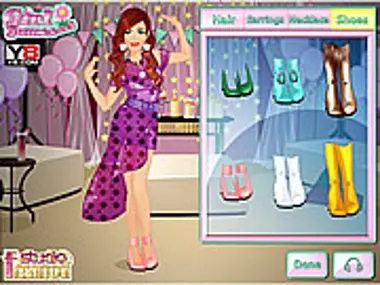 ¿Qué es lo más importante al ir a una fiesta? ¡Tu atuendo! ¿No sería genial diseñar tu propio atuendo de fiesta? ¡Pues eso es exactamente lo que puedes hacer con nuestro último juego de estudio de moda! Selecciona 4 prendas y elige un bonito color y patrón para cada artículo. Luego toma tus telas, córtalas y cóselas con la máquina de coser. Al final puedes elegir algunos accesorios encantadores.