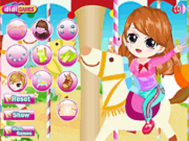 Camila está en la feria por primera vez en su vida. Quiere subir al carrusel porque escuchó a todas sus amigas hablar de él. Quiere lucir muy guapa para este día especial. ¿Puedes vestirla y prepararla para este divertido día?