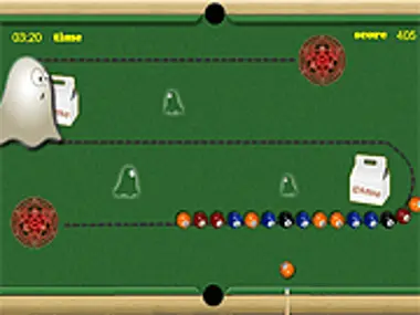 Use your mouse to aim and fire pool balls towards the other moving balls to form groups of 3 or more of the same colored balls.