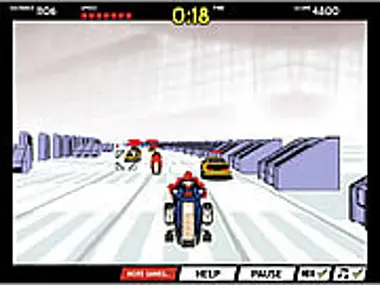 Deliver a precious cargo in this futuristic motorbike driving and shooting extravaganza.