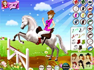 Ensilla y prepárate para montar tu caballo favorito y realizar algunos trucos geniales. Decide qué atuendo quieres ponerte y llévalo a pasear por el campo o en la pista.