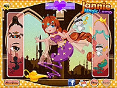 Jannie está en casa para una fiesta de disfraces, a la que invitaron a algunos amigos. Ella ha decidido usar un disfraz de genio pero no puede decidir cuál ponerse. Debes ayudar a Jannie a elegir la combinación perfecta de ropa y accesorios de genio para crear el atuendo de genio perfecto.