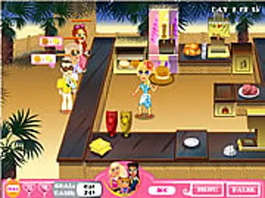Simplemente prepara los platos pedidos y sirve a los visitantes. Tienes que esperar a que el visitante llegue y pida el plato, preparar el plato pedido, llevar la comida preparada al visitante y cobrar a tiempo. También puedes comprar ropa y zapatos nuevos para ganar más y para servir a tus visitantes más rápido. Compra una televisión para que tus visitantes tengan más paciencia. Mejora tus electrodomésticos de cocina para preparar la comida más rápido. Ten cuidado para que la comida se cocine correctamente.