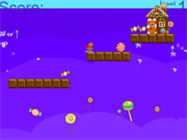 Help the ginger man to collect coin candies, avoid ice creams and red striped candies or kill them by jumping on them. Use arrow keys to play.