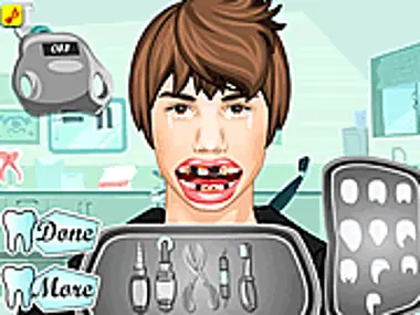 Justin Bieber tiene problemas dentales y debe hacer una visita al consultorio del dentista. Repararás sus dientes y le harás una gran sonrisa con dientes blancos y saludables.
