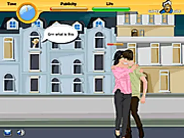 Se rumorea que Justin Bieber y Selena Gomez están enamorados. Aquí tienes la oportunidad de confirmar el rumor. Justin y Selena se besan en un lugar público. Señálalos al público observándolos y gana popularidad. Haz clic en la puerta o ventana de la casa para que la gente salga a verlos besarse. Rellena el indicador de popularidad dentro del tiempo dado y avanza al siguiente nivel. Si los señalas sin que se estén besando, reducirá tu barra de vida.