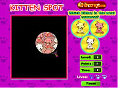 Kitten Spot is a memory game that will require you to take a look at a room full of little cats and decide what kind of kitty is the most common.