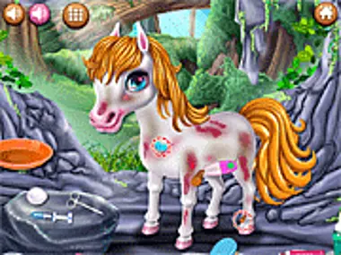 Esta pequeña poni tuvo un accidente, así que necesita tu ayuda. Ocúpate de sus heridas: límpialas, véndalas y consigue la medicación apropiada. Después de ayudarla, ocúpate de vestirla con todos los accesorios necesarios para que esté lista para montar.