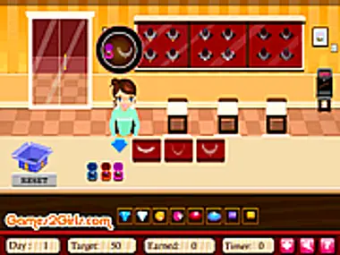 ¡La joyería de Marina es la más brillante del vecindario! ¡Es porque también vende sus propios diseños! ¡Sabe cómo hacer feliz a un cliente con una pieza brillante de accesorio!