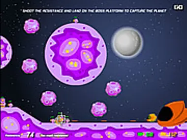Select the enemy land mass to attack, then fly your ship overhead and gun down all enemy units.