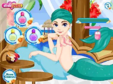 ¡Conoce a Goergiana la sirena! Esta encantadora sirena a veces se aburre en el mar y viene a tierra para pasar el rato con la gente. Su lugar favorito en la isla es este spa de lujo. Acompañémosla y disfrutemos de un nutritivo cuidado facial y capilar. Al final, la ayudarás a conseguir ropa nueva y maquillaje brillante para que resplandezca como una estrella.