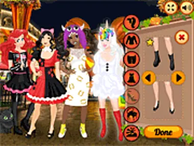 Halloween está a la vuelta de la esquina y cuatro de tus Princesas Disney favoritas se están preparando para ir a pedir dulces en su gran mundo de fantasía. Este año también van a asistir a un desfile de disfraces y cada una de ellas sueña con ganar el título de Miss Princesa de Halloween 2017. Así que parece que Ariel, Mulán, Tiana y Cenicienta necesitan tu consejo experto en este flamante juego de vestir para chicas con temática de Halloween. Ven y únete a las chicas y mira qué disfraces de Halloween tan originales puedes crear para cada una de ellas. La primera en la fila es la encantadora princesa pelirroja Ariel. Va a dejar a un lado su dulzura y se convertirá en una chica mala… así que, ¿qué te parece si seleccionas un disfraz inspirado en Harley Quinn para ella? En el armario de Mulán hay tanto vestidos de princesa que barren el suelo como disfraces espeluznantes. ¿La convertirás en una monada de sangre real o más bien en una calabaza? A continuación, te toca vestir a Tiana. Ya sea que elijas un vestido de esqueleto o un disfraz de animadora zombi, asegúrate de combinar tu elección con un nuevo peinado, el par de zapatos adecuado y algunos accesorios a juego. Ahora, pasemos a convertir a la bella Cenicienta en un monstruo de las galletas, en un cupcake o en una princesa de punk rock.