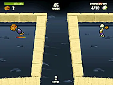 Beat all the zombies by throwing pumpkin at them.