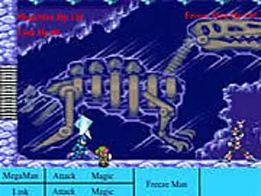 Help Megaman and Link finish their mission of recovering 3 golden gems by defeating their opponents in a duel that involves physical and magical attacks. Have fun!