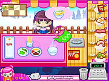¡Vamos a conseguir 1000 USD para la chica, para que pueda comprar una bicicleta adicional! ¿Cómo? ¡Vendiendo fideos! Instrucciones: prepara los fideos añadiendo agua hirviendo al tazón, luego añade los ingredientes apropiados y un par de ramitas cortadas. Por último, lleva el tazón a la mesa para servir. Comentarios: conseguir tanto dinero, cincuenta peniques a la vez, es un desafío. Afortunadamente, vender fideos por unos pocos céntimos es una forma agradable de conseguirlo.