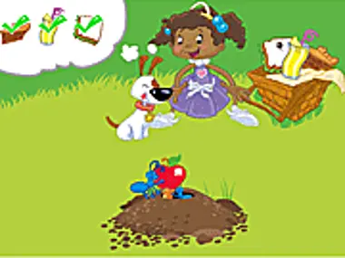 The ants are ruining Angie's picnic. Can you help her to get all the yummies back ?