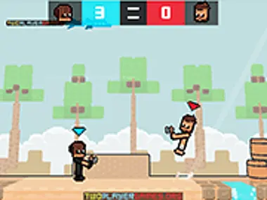 Pixel Smash Duel - Épico juego de batalla entre dos jugadores o contra un oponente de IA. En este duelo de píxeles, debes usar tu arma aleatoria para golpear y empujar hacia afuera. Simplemente controla a tu personaje con 2 botones contra tu amigo o contra el oponente de IA. ¡Diviértete!