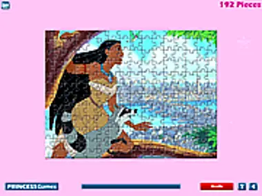 Pocahontas es en realidad un miembro de la tribu india Powhatan que reside en Virginia. Cuando su madre murió, ella fue el único miembro de su tribu que definitivamente no era xenófoba hacia los colonos blancos. Es una joven muy atractiva con una apariencia fantástica, cabello negro largo, piel cobriza y ojos marrones oscuros y brillantes. Pocahontas es representada como una joven noble, de espíritu libre y profundamente espiritual. Expresa una sabiduría que va más allá de su edad y ofrece amabilidad y orientación a quienes la rodean. Le encanta la aventura y la naturaleza. Exactamente esa imagen está frente a ti: ¡ella y su amigo en el bosque! Tienes que arrastrar piezas y formar una imagen. Hay pocos modos, cada uno de ellos con una variedad diferente de piezas y con su propia dificultad. ¡Intenta completar la imagen antes de que se agote el tiempo!