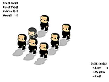 The object of the instantly familiar game is to get all of the RayRays standing. Clicking on a RayRay will change its state: a sitting RayRay will stand, while a standing RayRay will sit. Some RayRays affect others around it, so the trick becomes figuring out the correct sequence.