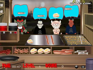 Identify the fiendish characters' desired food and serve it before the time gets over. Use mouse to click,and drag and drop the food item. Satisfied fiendish characters will place the money. You'll have to collect it, score more to play the next level.