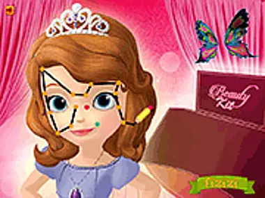 Sofía la Primera quiere sorprender a todos en el castillo real con un nuevo look. Por eso Sofía decide ir a tu salón de pintacaritas para hacerse un tatuaje temporal genial. Después de que Sofía termine, será la princesa más hermosa del mundo.