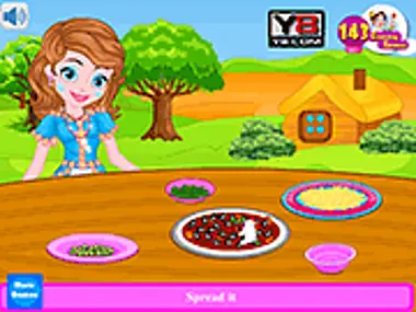 Hoy es un día especial para la princesa Sofía. ¿Le daremos una sorpresa? Le encanta la pizza. Y ahora va a preparar una deliciosa pizza. Acompáñala hasta que termine con la preparación. Ella está en la cocina ahora. Tener los ingredientes disponibles añade más sabor a la pizza. Los parientes de la princesa llegarán muy pronto. Así que intenta terminar de cocinar rápidamente. La prima de la princesa está loca por las pizzas. Estará de un humor jubiloso si ve la pizza que hace la boca agua. ¡Vamos, hagamos feliz a toda la familia! Muchas gracias por ayudar a la princesa. No olvides decorar la pizza al final.