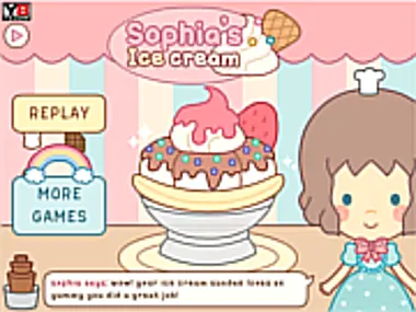 Crea tu propio y delicioso helado sundae y decóralo con la ayuda de Sophia. Desbloquea regalos especiales de salsa de chocolate haciendo coincidir tres helados con las imágenes al hacer clic en el botón desbloqueable junto al cubo de basura.