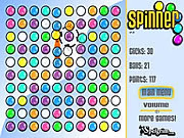 ¡Spinner es tu clásico juego de tres en raya con un giro! ¡Haz clic en una bola para girar las cuatro bolas que la rodean y conseguir tres bolas del mismo color en línea! Spinner tiene cuatro modos de juego diferentes: Click, Tiempo, Click Especial y Tiempo Especial. En Spinner, tu objetivo es unir tres bolas del mismo tipo horizontal o verticalmente. En los modos especiales, hay rompe-líneas que eliminan una fila de bolas y bombas que eliminan todas las bolas de ese tipo.