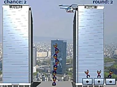 Stack all the people on top of each other so that you can grab hold of the helicopter and escape from the valley