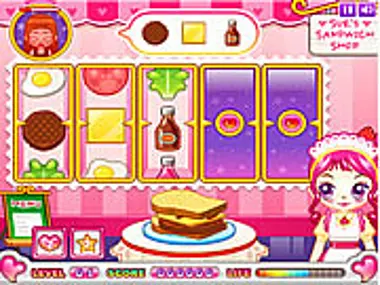 At Sue's Sandwich Shop, good taste is no gamble. Click when the ingredient highlighted at the top passes between the points to add it to the sandwich.