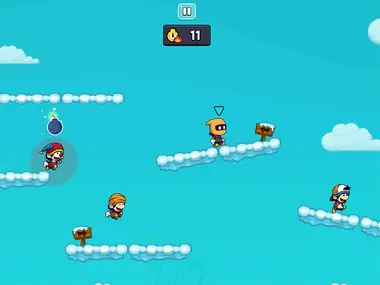 Tag Run es un juego de parkour multijugador de alta energía donde hasta cuatro jugadores locales luchan para deshacerse de la bomba y mantenerse con vida. Etiqueta a tus oponentes, usa plataformas de teletransporte y resortes, y sobrevive al caos a través de seis mapas únicos que incluyen Pixel, Winter, Lava, Jungle, Candy y Night. Juega al juego Tag Run en Y8 ahora.
