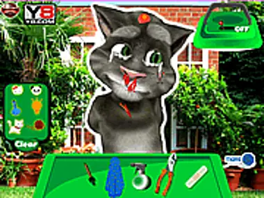 El divertidísimo y querido Tom, el gato que habla, se ha lesionado y no puede deleitarnos más, ya que siente mucho dolor. Coge rápidamente tus sofisticadas herramientas de médico de la bandeja y haz que este dulce gatito se sienta mejor de nuevo.