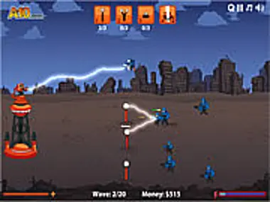 ¿Necesitas defender tu territorio? Una torre tesla podría ser lo que estás buscando. Súbete a tu torre tesla eléctrica y prepárate para infligir algo de daño a tus enemigos merodeadores. Coloca tus torres con cuidado para destruir a los invasores antes de que puedan dañar tu torre. ¡Aprovecha el poder del rayo y derrótalos a todos! Cada unidad enemiga destruida te hace ganar dinero, que puedes gastar en mejoras para ayudar a eliminar aún más enemigos. Es el juego de defensa de torres definitivo, inspirado por el genio de la ciencia loca, el mismísimo Nikola Tesla.