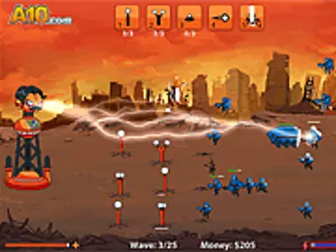 Este es Tesla Defense 2, una secuela del popular juego de defender tu base. Selecciona torres aéreas y terrestres y colócalas en el campo de batalla. Defiende tu base y repele a los soldados, tanques y aeronaves enemigos usando tus armas basadas en electricidad. ¡Destruye todo lo que se mueva!